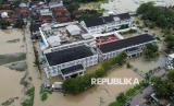 Foto udara kondisi RSUD Kota Serang terendam banjir di Kota Serang, Banten, Senin (12/1/2026). Banjir yang menggenangi pelataran RSUD Kota Serang, tidak melumpuhkan pelayanan kesehatan, meskipun sejumlah pasien harus digendong hingga dipapah oleh petugas untuk masuk ke area lobi. (FOTO : ANTARA FOTO/Muhammad Bagus Khoirunas)