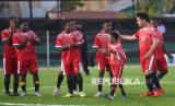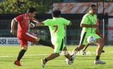 Wakil Presiden Gibran Rakabuming Raka (kiri) menendang bola saat bermain bola bersama anak-anak Sekolah Sepak Bola (SSB) di Stadion Lapangan Pendidikan Itlayikinia, Wamena, Papua Pegunungan, Selasa (13/1/2026). Selain dapat berinteraksi langsung dengan anak-anak muda Papua Pegunungan dalam suasana santai dan penuh keakraban, kegiatan ini juga dilakukan Wapres dalam rangka mendukung pembinaan generasi muda melalui olahraga. (FOTO : ANTARA FOTO/Indrianto Eko Suwarso)