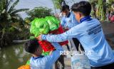 Petugas Satuan Pelayanan Pemenuhan Gizi (SPPG) Dapur Carnis menurunkan bingkisan Makanan Bergizi Gratis (MBG) dari atas perahu untuk didistribusikan di Deket, Lamongan, Jawa Timur, Kamis (15/1/2026). Petugas SPPG setempat menyalurkan sebanyak 600 bingkisan MBG untuk 35 sekolah dan ibu hamil menggunakan perahu di tujuh desa yang terdampak banjir luapan Sungai Bengawan Jero. (FOTO : ANTARA FOTO/Rizal Hanafi)