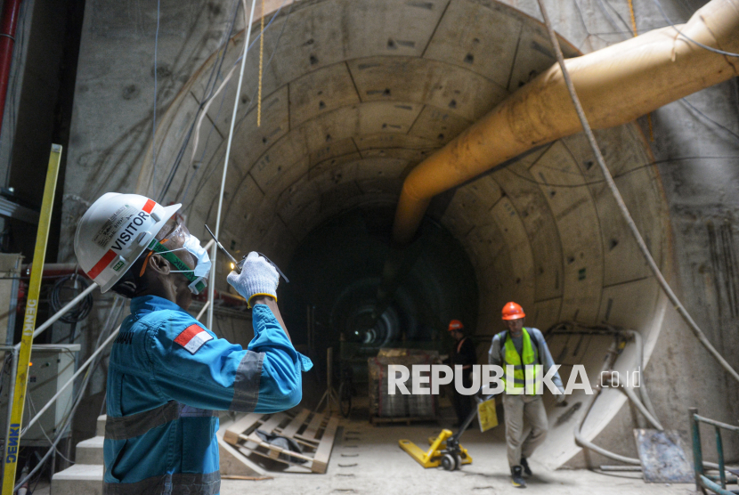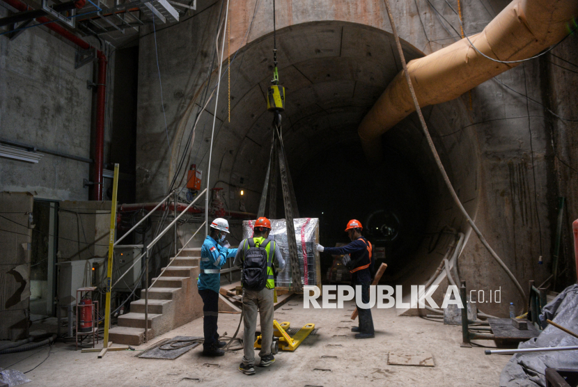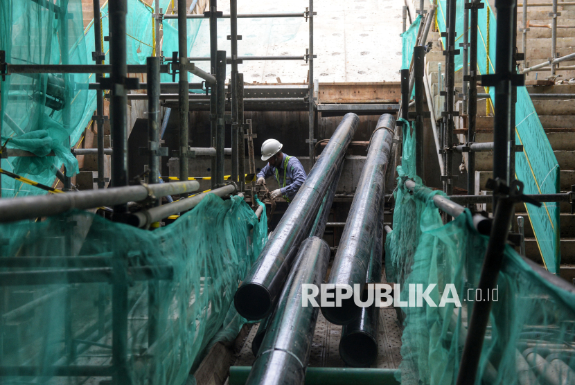 REPUBLIKA.CO.ID, JAKARTA -- Pekerja beraktivitas di Proyek pembangunan MRT Jakarta Fase 2A CP201, Stasiun Monas, Jakarta, Kamis (15/1/2026).