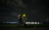Petani memasang lampu untuk menandai sawah beraliran listrik di Indramayu, Jawa Barat, Jumat (16/1/2026). Meski adanya imbauan untuk tidak menggunakan listrik sebagai jebakan tikus, petani di daerah tersebut terpaksa tetap memasang aliran listrik karena dianggap lebih efektif guna mengatasi serangan hama tikus yang merusak tanaman padi milik mereka. (FOTO : ANTARA FOTO/Dedhez Anggara)