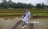REPUBLIKA.CO.ID, BOGOR -- Pengunjung berjalan di tengah hamparan sawah saat berwisata di Kampung Wisata Agro Eduwisata Organik Mulyaharja, Bogor, Jawa Barat, Sabtu (17/1/2026).