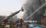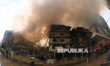 REPUBLIKA.CO.ID, KARACHI -- Petugas pemadam kebakaran berjuang memadamkan kobaran api besar di Gul Plaza di Karachi, Pakistan, Ahad (18/1/2026).