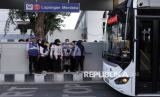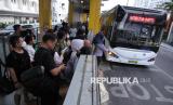 REPUBLIKA.CO.ID, MEDAN -- Sejumlah penumpang menaiki bus listrik di Halte Bus Rapid Transit (BRT), Medan, Sumatera Utara, Selasa (20/1/2026).