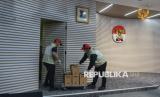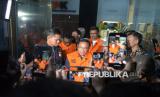 Petugas KPK usai menunjukan barang bukti saat konferensi pers terkait Operasi Tangkap Tangan (OTT) yang melibatkan Bupati Pati Sudewo di Gedung Merah Putih KPK, Jakarta, Selasa (21/1/2026). Tim KPK mengamankan barang bukti berupa uang tunai senilai Rp2,6 miliar dalam OTT yang melibatkan Bupati Pati Sudewo. (FOTO : Republika/Prayogi)