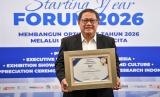 Direktur Utama Bank Syariah Nasional (BSN) Alex Sofjan Noor (tengah) menerima penghargaan Sastifaction Loyalty Engagement (SLE) di Jakarta, Kamis (22/1/2026). BSN memborong 16 penghargaan SLE setelah melalui proses penilaian yang dilakukan oleh MRI (Marketing Research Indonesia) kepada sejumlah bank di Indonesia dan mengantarkan BSN masuk dalam kelompok Top 10 Bank on SLE. (FOTO : Dok Republika)