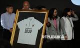 Ketua Umum PSSI Erick Thohir (tengah) menerima cinderamata berupa kaus produk apparel Kelme dari President of Kelme, Clinton Ke (kedua kanan) disaksikan CEO Kelme Indonesia Kevin Wijaya (kanan) dan Wakil Ketua PSSI Ratu Tisha Destria (kiri) saat Peluncuran Kerjasama PSSI dan Official Partner Timnas Indonesia di Jakarta, Jumat (23/1/2026). PSSI resmi bekerjasama dengan produsen apparel asal Spanyol, Kelme untuk penyedia jersi timnas sepak bola dan timnas futsal Indonesia yang berlangsung sampai 2030. Sementara, untuk peluncuran jersi resmi timnas Indonesia akan digelar pada bulan Maret 2026 mendatang. (FOTO : Republika/Thoudy Badai)