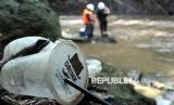 Peneliti mengambil sampel air Sungai Brantas dengan latar tumpukan sampah plastik saat penelitian mikroplastik di Dinoyo, Malang, Jawa Timur, Sabtu (24/1/2026). Penelitian yang dilakukan tim Universitas Brawijaya di puluhan titik Sungai Brantas dari hulu hingga hilir tersebut menemukan kandungan mikroplastik dengan konsentrasi berkisar antara 2 hingga 40 partikel per liter air, sehingga peneliti merekomendasikan pemerintah dan para pemangku kebijakan untuk menetapkan standar baku mutu pencemaran mikroplastik guna melindungi kualitas air karena dikhawatirkan akan berdampak pada kesehatan masyarakat. (FOTO : ANTARA FOTO/Ari Bowo Sucipto)