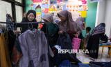Peserta memilih barang saat mengikuti pasar tukar dalam acara Temu Perempuan Minimalis di Sekolah Murid Merdeka, Pesanggrahan, Jakarta, Ahad (25/1/2026). Kegiatan pasar tukar dalam acara Temu Perempuan Minimalis ini merupakan salah satu kegiatan keberlanjutan yang memfasilitasi pertukaran barang layak pakai guna memperpanjang usia produk. Selain itu, kegiatan ini mendorong penerapan gaya hidup minimalis, mengurangi limbah, serta mempromosikan konsumsi yang lebih bijak sebagai bentuk dukungan terhadap keberlanjutan (sustainability). Acara Temu Perempuan Minimalis ini merupakan acara tahunan yang diselenggarakan oleh komunitas perempuan Indonesia Minimalist Mom Indonesia. (FOTO : Republika/Prayogi)