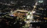 Foto udara suasana wajah baru Alun-Alun pascarevitalisasi di Sidoarjo, Jawa Timur, Ahad (25/1/2026). Alun-alun Sidoarjo yang dilengkapi sejumlah fasilitas seperti zona lansia, zona anak-anak hingga zona olahraga outdoor termasuk amphitheater dengan biaya anggaran Rp 24,6 miliar tersebut rencana diresmikan pada 27 Januari 2026 dan menjadi ikon baru ruang publik untuk menunjang berbagai aktivitas masyarakat setempat dan meningkatkan daya tarik wisata di wilayah itu. (FOTO : ANTARA FOTO/Umarul Faruq)