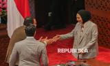 Wakil Ketua DPR RI Sari Yuliati (kanan) bersalaman dengan Anggota DPR RI lainnya usai membacakan sumpah jabatan saat dilantik menjadi Wakil Ketua DPR RI pada Sidang Paripurna di Kompleks Parlemen, Senayan, Jakarta, Selasa (27/1/2026). Rapat Paripurna tersebut menetapkan Sari Yuliati sebagai Wakil Ketua DPR RI pengganti Wakil Ketua DPR RI sebelumnya Adies Kadir setelah ditetapakan sebagai Hakim Mahkamah Konstitusi pengganti Arief Hidayat. (FOTO : Republika/Thoudy Badai)