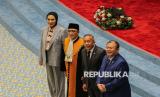 Wakil Ketua DPR RI Sari Yuliati (kiri) bersama Wakil Ketua DPR RI lainnya Saan Mustopa (kedua kanan) dan Cucun Ahmad Syamsurijal (kanan) dan Ketua Mahkamah Agung, Sunarto (kedua kiri) berfoto bersama usai pelantikan Wakil Ketua DPR RI pada Sidang Paripurna di Kompleks Parlemen, Senayan, Jakarta, Selasa (27/1/2026). Rapat Paripurna tersebut menetapkan Sari Yuliati sebagai Wakil Ketua DPR RI pengganti Wakil Ketua DPR RI sebelumnya Adies Kadir setelah ditetapakan sebagai Hakim Mahkamah Konstitusi pengganti Arief Hidayat. (FOTO : Republika/Thoudy Badai)