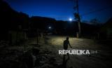 REPUBLIKA.CO.ID, ACEH -- Warga melintas di bawah lampu penerangan jalan di lokasi banjir bandang di Desa Uyem Beriring, Teripe Jaya, Kabupaten Gayo Lues, Aceh, Selasa (27/1/2026).