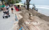 Upaya penanganan abrasi di Pantai Kuta, Badung, Bali, terus dilakukan. Penanganan abrasi dilakukan dengan pemasangan batu sebagai pengaman pantai atau revetment menyusul tingginya gelombang laut sehingga menggerus pasir di dekat area pedestrian objek wisata itu sejak empat hari lalu. (FOTO : ANTARA FOTO/Nyoman Hendra Wibowo)