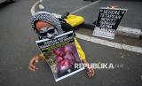 Aksi tersebut menyoroti deforestasi yang menghancurkan habitat hidup primata.