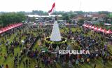 REPUBLIKA.CO.ID, SIDOARJO -- Penampakan tumpeng tempe setinggi 9 meter di Lapangan Desa Sedenganmijen, Krian, Sidoarjo, Jawa Timur, Ahad (1/2/2026).
