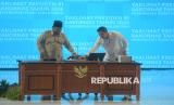 Presiden Prabowo Subianto bersama Sekertaris Kabinet Teddy Indra Wijaya usai menyampaikan taklimat dalam Rapat Koordinasi Nasional (Rakornas) Pemerintah Pusat dan Pemerintah Daerah Tahun 2026 di Sentul International Convention Center (SICC), Bogor, Jawa Barat, Senin (2/2/2026). Rakornas tersebut diikuti oleh sekitar 4.487 peserta yang terdiri atas unsur kementerian/lembaga, gubernur, bupati/wali kota, pimpinan DPRD, serta anggota Forum Koordinasi Pimpinan Daerah (Forkopimda) tingkat provinsi dan kabupaten/kota se-Indonesia. Rakornas ini bertujuan memperkuat sinergi antara pemerintah pusat dan daerah dalam mengimplementasikan program prioritas Presiden menuju Indonesia Emas 2045. (FOTO : Republika/Prayogi )
