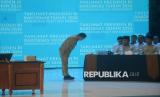 Presiden Prabowo Subianto bersiap menyampaikan taklimat dalam Rapat Koordinasi Nasional (Rakornas) Pemerintah Pusat dan Pemerintah Daerah Tahun 2026 di Sentul International Convention Center (SICC), Bogor, Jawa Barat, Senin (2/2/2026). Rakornas tersebut diikuti oleh sekitar 4.487 peserta yang terdiri atas unsur kementerian/lembaga, gubernur, bupati/wali kota, pimpinan DPRD, serta anggota Forum Koordinasi Pimpinan Daerah (Forkopimda) tingkat provinsi dan kabupaten/kota se-Indonesia. Rakornas ini bertujuan memperkuat sinergi antara pemerintah pusat dan daerah dalam mengimplementasikan program prioritas Presiden menuju Indonesia Emas 2045. (FOTO : Republika/Prayogi )