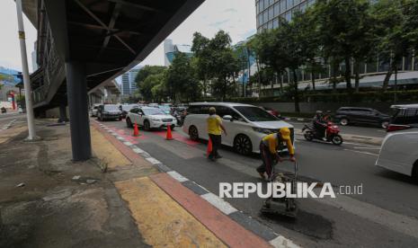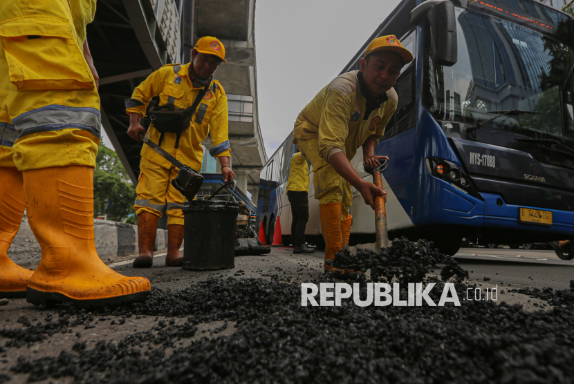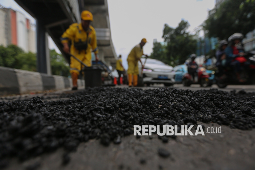 Pemerintah Provinsi DKI Jakarta bergerak cepat dalam merespon persoalan kerusakan jalan yang ditimbulkan akibat banjir dan genangan air. Sejak awal Januari 2026, Pemprov DKI Jakarta melalui Dinas Bina Marga DKI Jakarta telah menangani sekitar 6.000 titik jalan berlubang di Jakarta. (FOTO : Republika/Thoudy Badai)