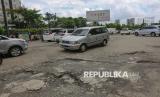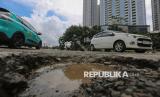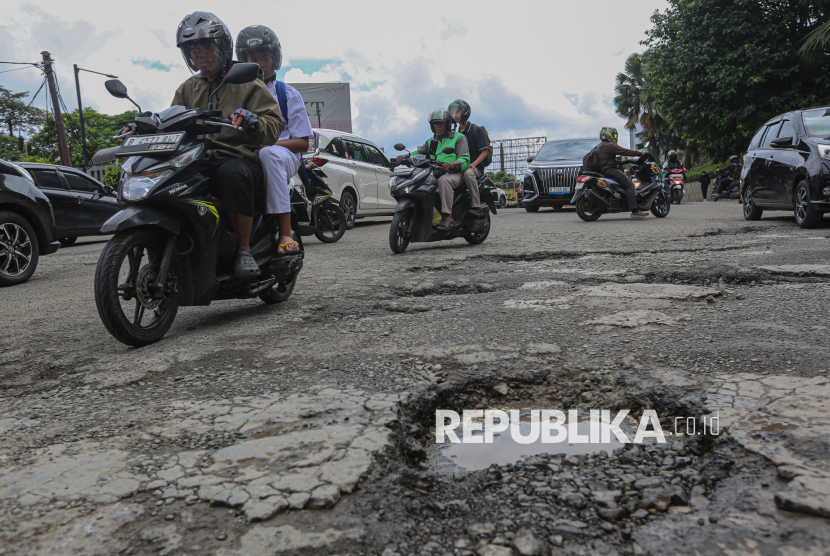 Tak hanya mengganggu kenyamanan, kerusakan infrastruktur, seperti jalan berlubang dan permukaan yang tidak rata, juga menjadi salah satu faktor yang meningkatkan potensi terjadinya kecelakaan lalu lintas. (FOTO : Republika/Thoudy Badai)