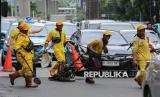 Satpel Bina Marga di tingkat kecamatan hingga satgas pasukan kuning juga rutin memantau kondisi jalan dan melakukan penanganan cepat apabila ditemukan kerusakan baru. Setiap titik jalan yang membutuhkan perbaikan akan langsung ditangani. (FOTO : Republika/Thoudy Badai)