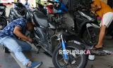 Dua teknisi memasang alarm gratis pada sepeda motor milik warga di Polsek Wonokromo, Surabaya, Jawa Timur, Rabu (4/2/2026). Polrestabes Surabaya membagikan sekaligus memasang 2.500 alarm sepeda motor gratis kepada warga secara bertahap melalui seluruh polsek jajarannya, guna memberikan sarana pengaman tambahan sepeda motor dan meningkatkan kewaspadaan masyarakat sehingga diharapkan dapat mencegah tindak pidana pencurian kendaraan bermotor (curanmor). (FOTO : ANTARA FOTO/Didik Suhartono)