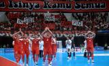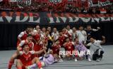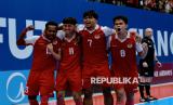 Pemain Timnas futsal Indonesia seusai mengalahkan Jepang pada pertandingan semifinal AFC Futsal Asian Cup 2026 di Indonesia Arena, Senayan, Jakarta, Sabtu (5/2/2026). Timnas Futsal Indonesia melaju ke final Piala Futsal Asia setelah mengalahkan Jepang dengan skor 5-3. (FOTO : Edwin Putranto/Republika)