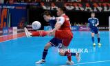 Pemain Timnas futsal Indonesia Firman Adriansyah melepaskan tendangan ke gawang Jepang pada pertandingan semifinal AFC Futsal Asian Cup 2026 di Indonesia Arena, Senayan, Jakarta, Sabtu (5/2/2026). Timnas Futsal Indonesia melaju ke final Piala Futsal Asia setelah mengalahkan Jepang dengan skor 5-3. (FOTO : Edwin Putranto/Republika)