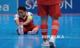 Pemain Timnas futsal Indonesia Mochammad Iqbal memegang kakinya saat melawan Jepang pada pertandingan semifinal AFC Futsal Asian Cup 2026 di Indonesia Arena, Senayan, Jakarta, Sabtu (5/2/2026). Timnas Futsal Indonesia melaju ke final Piala Futsal Asia setelah mengalahkan Jepang dengan skor 5-3. (FOTO : Edwin Putranto/Republika)