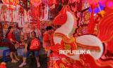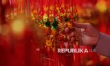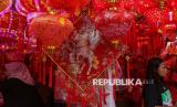 Warga memilah pernak pernik imlek di kawasan Pancoran Chinatown, Glodok, Jakarta Barat, Jumat (6/2/2026). Menjelang perayaan Tahun Baru Imlek 2577 kongzili pada 17 Februari mendatang, kawasan Glodok dipadati oleh pedagang pernak pernik pernik imlek. Lapak musiman tersebut mulai dipenuhi oleh warga untuk berburu hiasan menyambut tahun baru China. Beragam pernak pernik bernuansa merah seperti angpao, hiasan dinding begambar shio kuda, boneka kucing hoki, gantungan hingga lampion dijual dengan harga mulai dari Rp6 ribu hingga Rp2,5 juta. (FOTO : Republika/Thoudy Badai)
