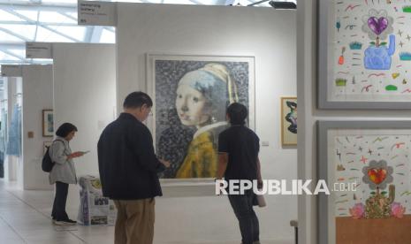 REPUBLIKA.CO.ID, JAKARTA -- Pengunjung mengamati karya seni dalam Art Jakarta Papers 2026 di City Hall, Pondok Indah Mall 3, Jakarta, Ahad (8/6/2026).