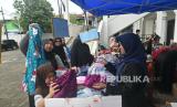 Warga melihat barang yang dijual di bazar barang bekas saat Peringatan Isra Miraj di Masjid Raya Al-Kusuf Komplek Ikip, Duren Sawit, Jakarta Timur, Ahad (8/2/2026). Peringatan Isra Miraj di Masjid Raya Al-Kusuf diisi dengan berbagai kegiatan seperti donor darah, bazar barang bekas dan tausiyah. (FOTO : Dok Republika)