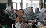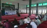 Warga mendengarkan tausiyah saat Peringatan Isra Miraj di Masjid Raya Al-Kusuf Komplek Ikip, Duren Sawit, Jakarta Timur, Ahad (8/2/2026). Peringatan Isra Miraj di Masjid Raya Al-Kusuf diisi dengan berbagai kegiatan seperti donor darah, bazar barang bekas dan tausiyah. (FOTO : Dok Republika)