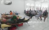 Warga mengikuti kegiatan donor darah saat Peringatan Isra Miraj di Masjid Raya Al-Kusuf Komplek Ikip, Duren Sawit, Jakarta Timur, Ahad (8/2/2026). Peringatan Isra Miraj di Masjid Raya Al-Kusuf diisi dengan berbagai kegiatan seperti donor darah, bazar barang bekas dan tausiyah. (FOTO : Dok Republika)