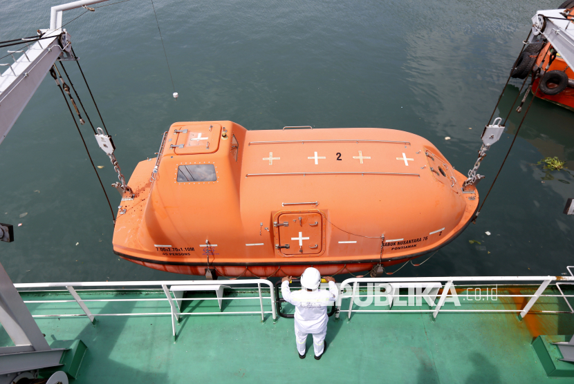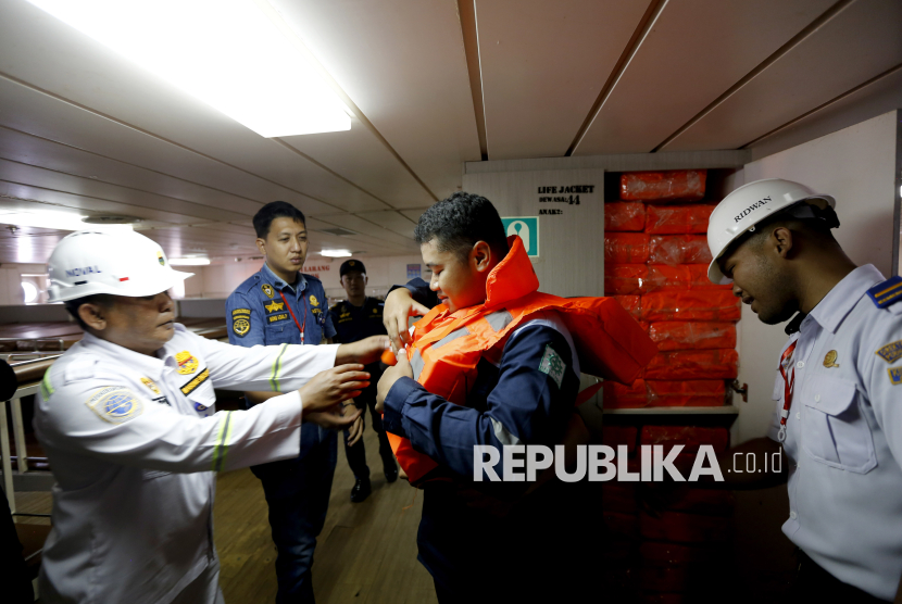 REPUBLIKA.CO.ID, GORONTALO -- Petugas Kantor Kesyahbandaran dan Otoritas Pelabuhan (KSOP) Gorontalo memeriksa kondisi jaket pelampung di KM Sabuk Nusantara 76 di Pelabuhan Gorontalo, Kota Gorontalo, Gorontalo, Senin (9/2/2026).