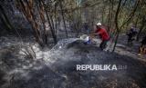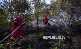 REPUBLIKA.CO.ID, BATAM -- Anggota Manggala Agni Kementerian Lingkungan Hidup dan Kehutanan (KLHK) berusaha memadamkan kebakaran hutan di kawasan hutan lindung Taman Lestari di Batam, Kepulauan Riau, Senin (9/2/2026).
