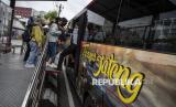 Sejumlah penumpang turun dari bus Trans Jateng di Halte Pemuda, Semarang, Jawa Tengah, Rabu (11/2/2026). Pemerintah Provinsi Jawa Tengah mencatat bahwa pada 2025 tingkat keterisian moda transportasi massal Trans Jateng melampaui 110 persen dengan jumlah penumpang sekitar 10.240.745 orang, yang didorong oleh kebijakan pemangkasan tarif menjadi Rp1.000 bagi lansia, buruh, pelajar, veteran, dan penyandang disabilitas. (FOTO : ANTARA FOTO/Aprillio Akbar)