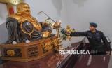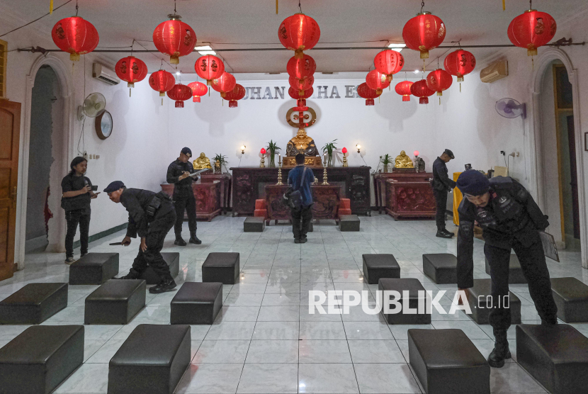REPUBLIKA.CO.ID, KENDARI -- Sejumlah personel Satuan Brigade Mobile (Sat Brimob) Polda Sultra melakukan sterilisasi jelang ibadah Imlek di Wihara Tekad Maitreya, Kendari, Sulawesi Tenggara, Senin (16/2/2026).