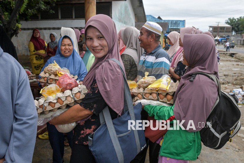 REPUBLIKA.CO.ID, TAPSEL -- Warga menerima bantuan paket sembako di Desa Huta Godang, Batang Toru, Tapanuli Selatan, Sumatera Utara, Selasa (17/2/2026).