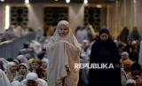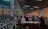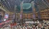 Umat Islam melaksanakan Shalat Tarawih pertama di Masjid Istiqlal, Jakarta, Rabu (18/2/2026). Ribuan jamaah tampak memadati masjid terbesar se-Asia Tenggara untuk menunaikan ibadah shalat Tarawih perdana menyambut Ramadhan 1447 Hijriah. Pemerintah menetapkan awal puasa atau 1 Ramadhan 1447 Hijriah pada Kamis (19/2). (FOTO : Edwin Putranto/Republika)