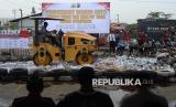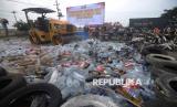 REPUBLIKA.CO.ID, KLATEN -- Pekerja memusnahkan minuman keras (miras) dengan menggunakan alat berat pada kegiatan pemusnahan miras dan knalpot brong di Polres Klaten, Jawa Tengah, Kamis (19/2/2026).