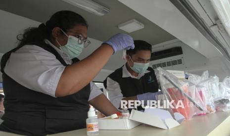 REPUBLIKA.CO.ID, DENPASAR -- Petugas melakukan uji sampel makanan takjil di dalam mobil laboratorium keliling di Denpasar, Bali, Kamis (19/2/2026).