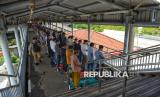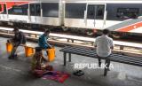 Umat muslim seusai melaksanakan sholat Jumat pertama pada bulan Ramadhan 1447 Hijriah di Stasiun Kampung Bandan, Jakarta, Jumat (20/2/2026). Jamaah memanfaatkan area stasiun sebagai tempat ibadah karena Masjid Al Hidayah yang berada di sebelah stasiun tidak mampu menampung seluruh jamaah. Pelaksanaan sholat Jumat berlangsung khusyuk dan tertib dengan pengaturan shaf yang menyesuaikan kondisi area stasiun. (FOTO : Republika/Prayogi)