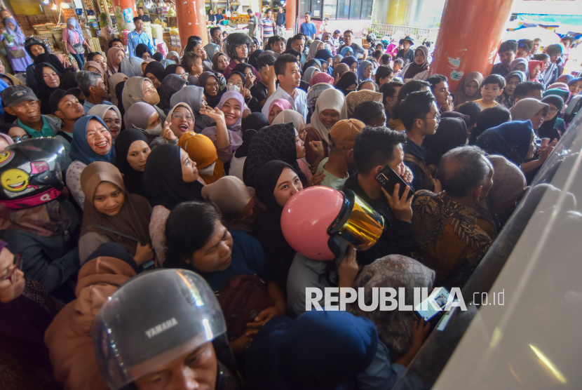 REPUBLIKA.CO.ID, PADANG -- Sejumlah warga mengantre untuk menukarkan uang pada mobil penukaran uang keliling di Pasar Raya Padang, Sumatera Barat, Senin (23/2/2026).