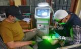 Petugas menghapus tato peserta menggunakan laser di Masjid Sunda Kelapa, Jakarta, Selasa (24/2/2026). Baznas Bazis DKI Jakarta mengelar roadshow layanan hapus tato gratis bagi masyarakat yang ingin berhijrah di berbagai wilayah Jakarta. Program ini menargetkan sekitar 1.000 peserta. Pendaftaran dibuka mulai 23 Februari hingga 4 Maret 2026 melalui laman daring. Kegiatan hapus tato bertujuan memberikan kesempatan kepada masyarakat yang ingin berhijrah dan memperbaiki diri. (FOTO : Republika/Prayogi)