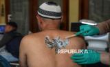 REPUBLIKA.CO.ID, JAKARTA -- Peserta bersiap menghapus tato menggunakan laser di Masjid Sunda Kelapa, Jakarta, Selasa (24/2/2026).