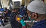 Peserta bersiap menghapus tato menggunakan laser di Masjid Sunda Kelapa, Jakarta, Selasa (24/2/2026). Baznas Bazis DKI Jakarta mengelar roadshow layanan hapus tato gratis bagi masyarakat yang ingin berhijrah di berbagai wilayah Jakarta. Program ini menargetkan sekitar 1.000 peserta. Pendaftaran dibuka mulai 23 Februari hingga 4 Maret 2026 melalui laman daring. Kegiatan hapus tato bertujuan memberikan kesempatan kepada masyarakat yang ingin berhijrah dan memperbaiki diri. (FOTO : Republika/Prayogi)