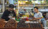 Karyawan melayani pembeli kurma di salah satu toko kurma di kawasan Tanah Abang, Jakarta, Selasa (24/2/2026). Pada awal bulan Ramadan, penjualan kurma mengalami peningkatan dibandingkan hari biasa. Menurut pedagang, jenis kurma yang paling diminati adalah medjool dan ajwa. Harga kurma dibanderol mulai dari Rp70 ribu hingga Rp350 ribu per kilogram, tergantung jenis dan kualitasnya. Selain melayani pembelian secara langsung di toko, pedagang juga melayani penjualan secara daring melalui marketplace. (FOTO : Republika/Prayogi)