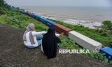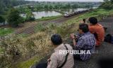 REPUBLIKA.CO.ID, BATANG -- Sejumlah warga duduk di pinggir tebing melihat kereta api melintas di Bukit Cinta kawasan Pantai Jodo, Gringsing, Kabupaten Batang, Jawa Tengah, Selasa (24/2/2026).