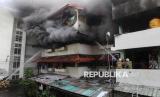 REPUBLIKA.CO.ID, SURABAYA -- Petugas Dinas Pemadam Kebakaran dan Penyelamatan (DPKP) Kota Surabaya bersama warga berusaha memadamkan api yang membakar Rusun Sumbo, Surabaya, Jawa Timur, Rabu (25/2/2026).